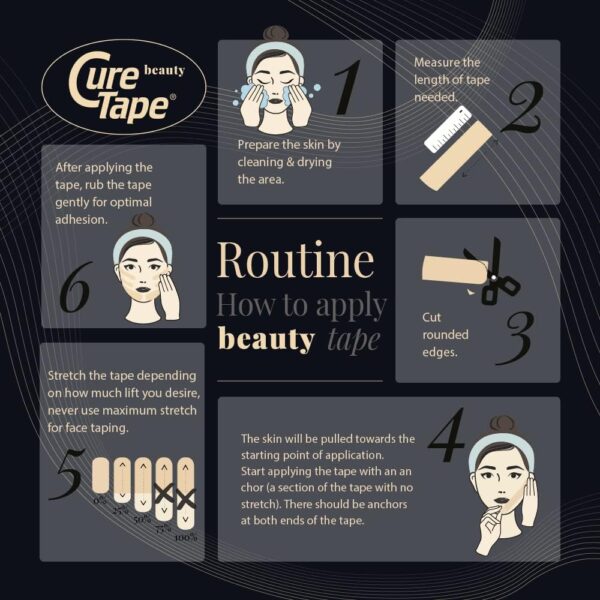 Hergestellt aus weichem, hautfreundlichem Material mit elastischem Kleber, hebt das Tape sanft die Haut, unterstützt die Lymph- und Blutzirkulation und reduziert sichtbar Schwellungen. Dabei lässt es sich einfach anbringen, unter Make-up tragen und passt sich verschiedenen Gesichtspartien an – von Wangen und Kiefer bis zu Hals und Stirn.