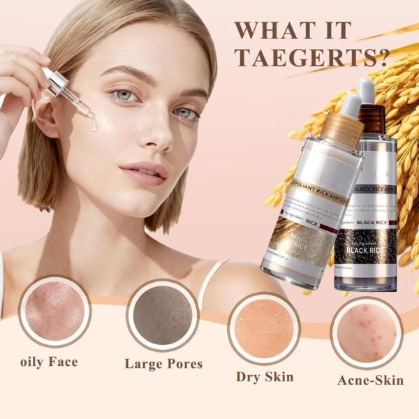 Die Kombination aus White Rice Ampoule und Black Rice Ampoule arbeitet synergistisch: Die White Rice Ampoule sorgt für sanfte Exfoliation und ein strahlendes Erscheinungsbild, während die Black Rice Ampoule tiefenwirksam reinigt und Unreinheiten wie verstopfte Poren und überschüssigen Talg löst. Diese duale Wirkweise hilft, grobe Hautstruktur zu glätten und gleichzeitig Feuchtigkeit einzuschließen.